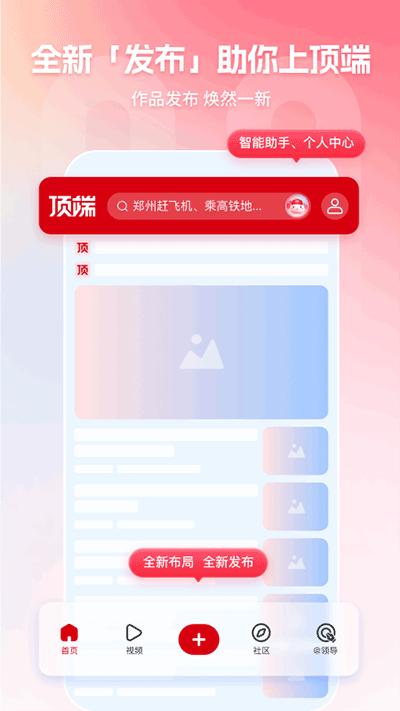 顶端新闻app是河南省委直属权威的主流媒体,立足河南、放眼全国。平台自上线以来,以“上顶端、看河南、知天下”为己任,立足河南、辐射全国,放眼天下,不断满足用户在新闻资讯、问政求助、社交互动、便民服务等方面的需求,创新推出“我想@领导”、“金水路观察”、“顶端科创”、“第九大街”、“记者陪你去办事儿”、“家有小宝”、“中原策”、“顶端社区”、“顶端作家”等分众垂直产品,带给大家多方面的便捷性服务。同时它还以先进的AI技术为驱动,提供满足受众在问政、新闻、生活服务等各领域的信息服务,以海量优质垂直内容,精准聚合分发动作,逐步打造河南优质资讯集散地,形成新的舆论引导方式。并且顶端新闻app还会通过分析用户的兴趣喜好来为大家推送你们想要看到的资讯内容,真正做到越用越懂你!