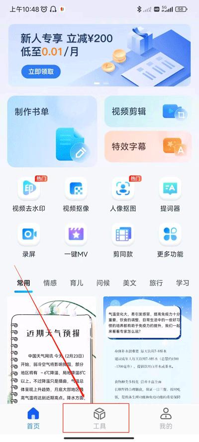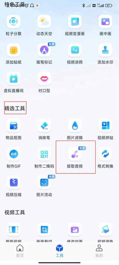 2、在精选工具中找到提取音频工具