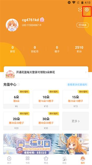1、在我的页面中点击右上角的设置按钮;