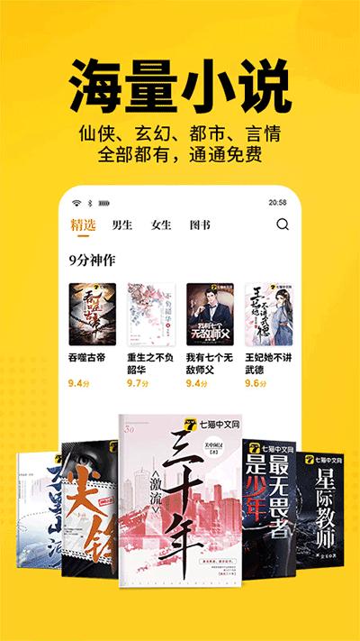 七猫免费小说app是一款非常热门的免费看小说的神器软件,除了看小说外,还可以免费听小说,在没有空闲时间看手机的时候使用听书功能,聊天游戏小说各不耽误,十分方便快捷。七猫免费小说app小说分类非常的全,内容覆盖了总裁豪门小说、言情小说、穿越架空小说、玄幻小说、青春校园小说、修仙小说、悬疑小说、同人小说、名著等各种类型,你想看的小说,这里全都有,并且还可以通过性别优先为您推荐更适合的书籍,轻轻松松看你想看。免费看小说的同时更能获取大量金币,金币可用于兑换现金!一遍看小说一边赚钱,感兴趣的用户欢迎在本站下载使用!