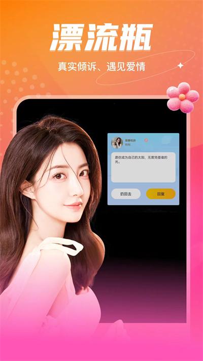音麦漂流瓶app是一款专属的社交软件,就像QQ空间的漂流瓶一样,你可以通过它与人群进行交流,但与之不同的是它是可以得到回应的。同时,音麦漂流瓶app拥有着多种方式交友功能,平台会根据你的信息数据为你推荐那个让你心动的理想对象,并进行实时互动。