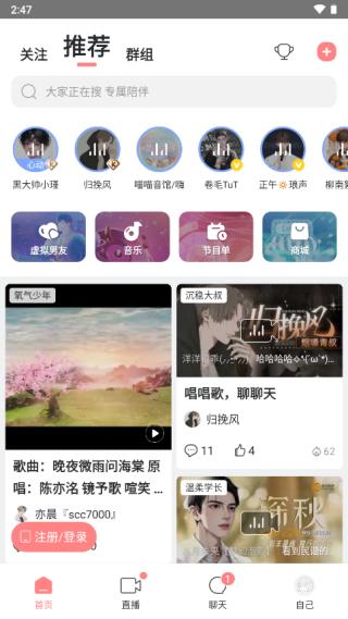 克拉克拉app是一款专注制造声控福利、还能快速匹配认识新朋友的神奇app。软件主打声控语音直播,因为有很多知名的配音演员和cv在这个平台直播,所以整个平台的风格和受众会更偏向二次元一些。同时,这里的主播类型很多,直播间下方会自带声音标签,不管是直接搜索也好,偶尔刷到也好,都可以快速精准地找到你喜欢的声音。主播基本可以分成两类:才艺(唱歌、配音)主播,脱口秀(闲聊)主播,包括糖醋排骨、卡修(卡道长)、林予曦、cv柒夜等。我很喜欢去蹲他们的直播间听唱歌和PIA戏!平时广播剧听多了,听听现场直播配音会有不一样的感觉,本声控少女一本满足!有需要声控app的朋友快来本站下载使用吧!