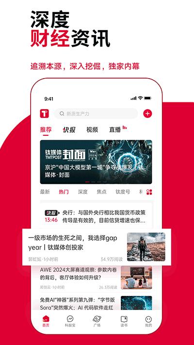 钛媒体app是一款专注于财经类资讯的专业媒体客户端,秉承着“专业无止境”精神,以“专业主义、技术信仰、全球影响”为宗旨,一直致力于为技术商业从业者、投资者、企业管理者。软件提供了可靠的财经资讯、一二级市场数据分析、独家深度报道、市场行研等专业内容,为用户持续带来专业的财经资讯,全面提升用户的财经知识面。
