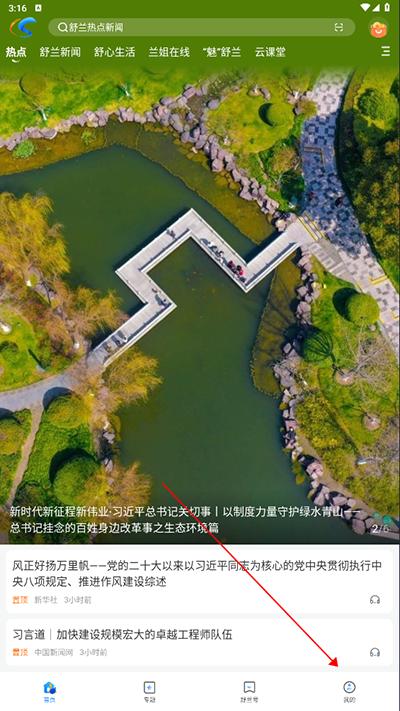 1、下载后打开进入舒兰融媒app,在首页下方点击【我的】;