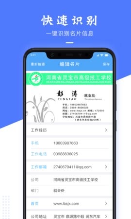 3.提供给你更好的名片扫描识别与管理,是移动互联网时代身份象征,高效通的一张名片让你传递视频、图像、地图等多样化丰富多彩的信息