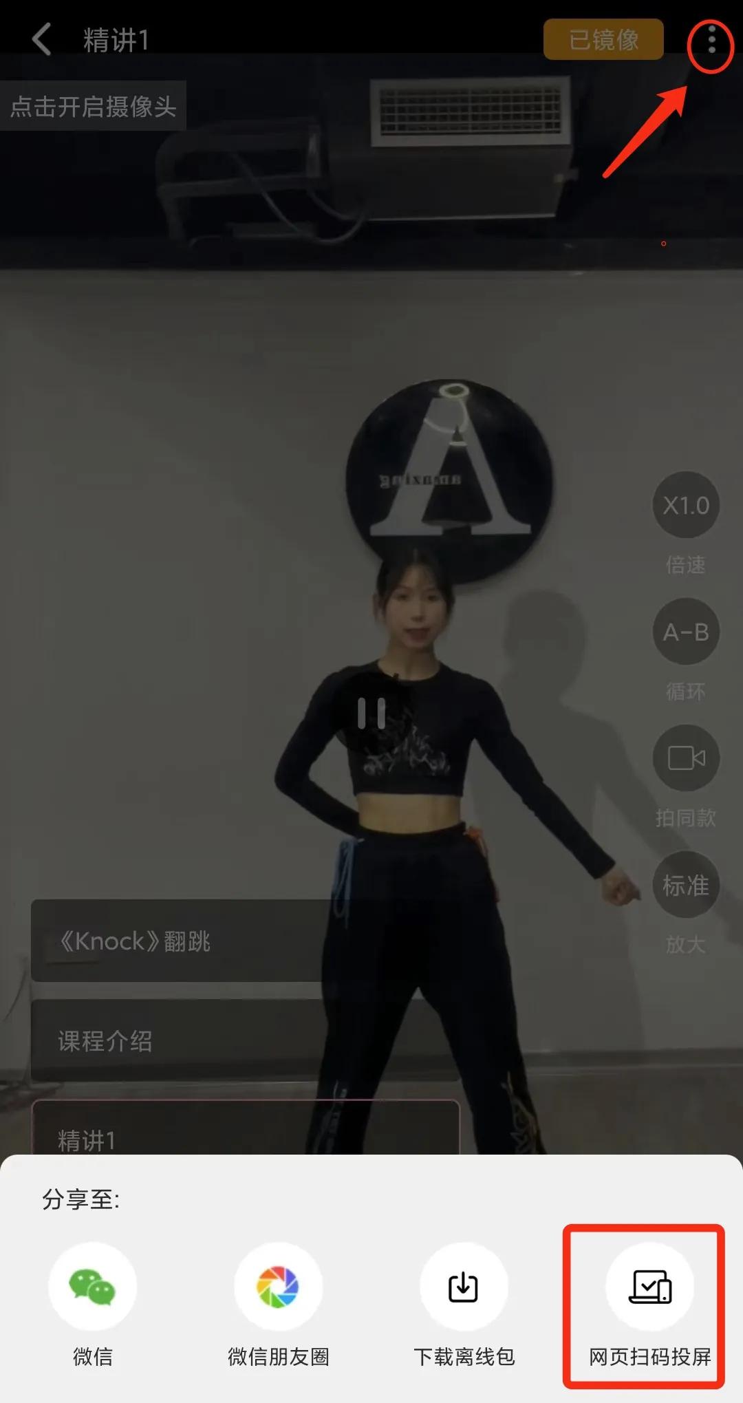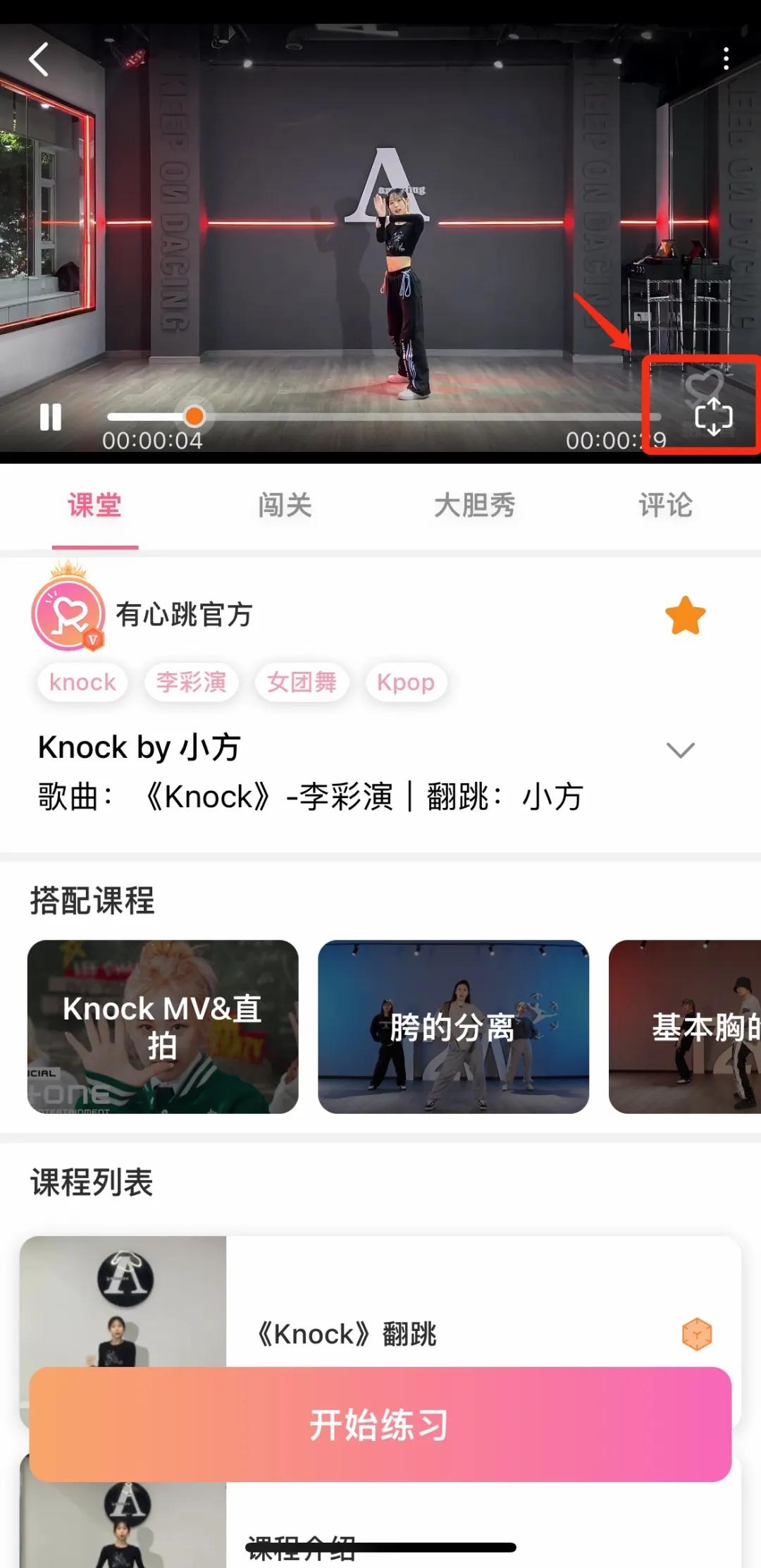 2、点击选择要练习的舞蹈,点击右下方按钮进入全屏。