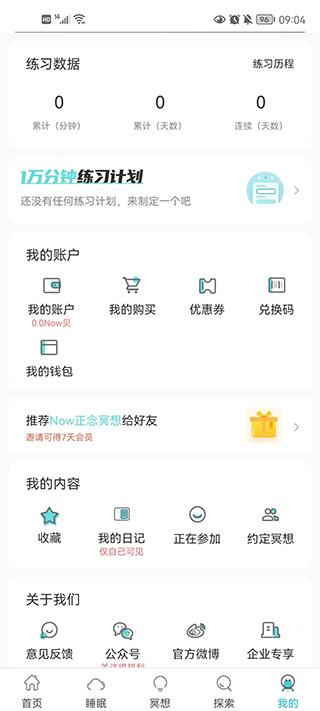 在我的中,用户可以随时随地的去查看我的账户和我的日记以及约定的冥想周期计划。
