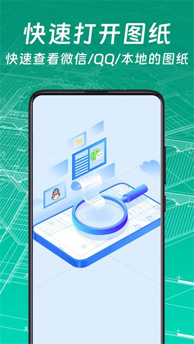 CAD手机看图大师也叫做CAD快速看图王,是一款高效、快速的CAD看图软件,全球千万建筑师、工程师、施工专业人员、现场技术人员和承包商等各行业用户都在使用,无论是机械制图、电气制图、工程建筑、现场勘测、 装饰装修,中望CAD看图大师都可以轻松搞定,拥有很多实用功能:提取文字、异形面积、模板面积、连续测量、角度、坐标等,是设计人员和土木工程的得力帮手,和电脑版本没有什么区别,各种基本功能都可以实现,还可以与电脑互相连接,通过数据线导入本地图纸,完美解决设备限制问题,轻松编辑各种文件,随时随地查看修改,让你的工作变得更轻松。