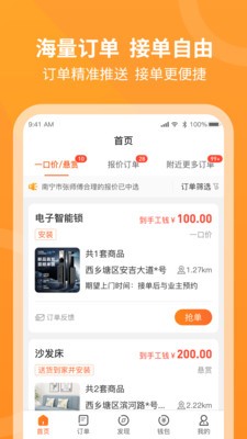 1、订单列表,一目了然,师傅可实时查看本地派单动态,接单更便捷。