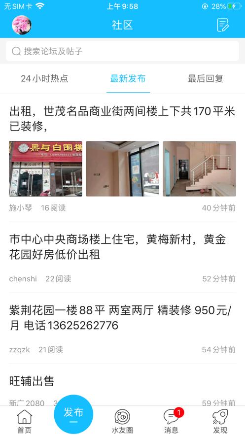 3、点击底部的【社区】,用户可以看到求职招聘、房屋租赁等服务
