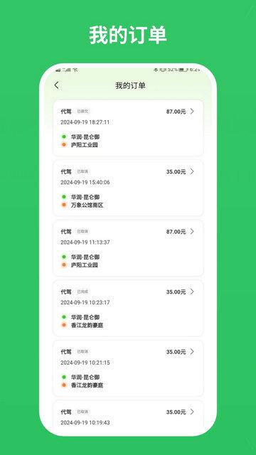 3、页面简约,软件的各个页面简约明了,致力于让用户可更好的查看、了解代驾情况。