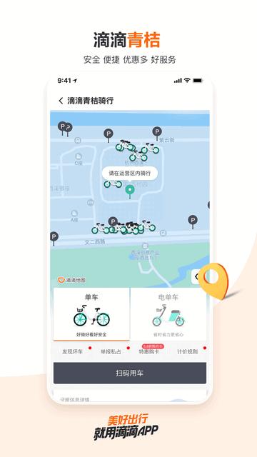 『滴滴单车平台』小蓝和青桔单车免押金骑行。