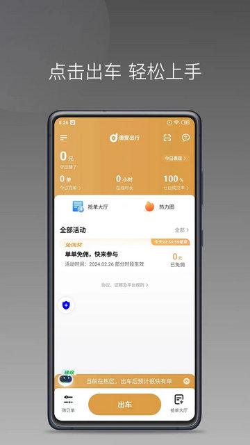 德爱出行车主是一款专为网约车司机打造的出行接单软件,该软件为司机提供了丰富的订单信息,各种大额长途订单在线可接,还为司机准备了智能接单系统,定时自动为其接取附近订单,不用担心无单可接,并且订单金额实时到账,司机账号余额随时可提现,为司机的工作和收入提供稳定的保障。