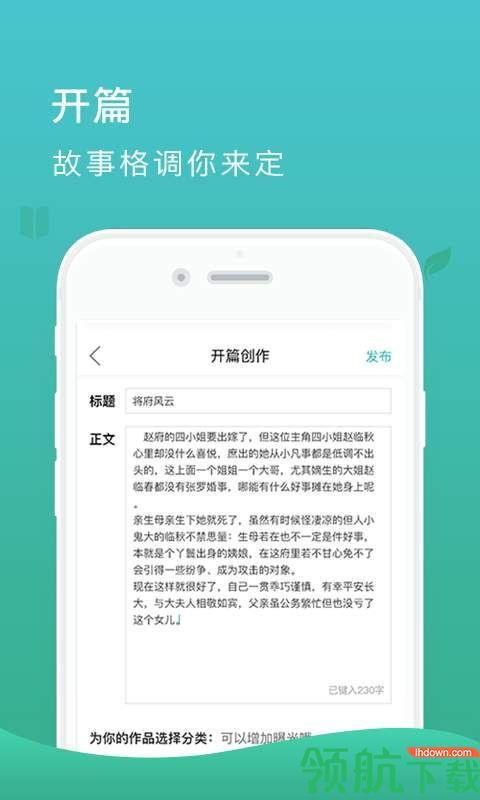 开篇、故事树鼓励用户自己开篇创作,可以自己写完整的故事,也可以写好开篇后大家来续写