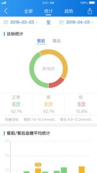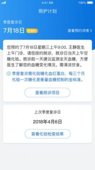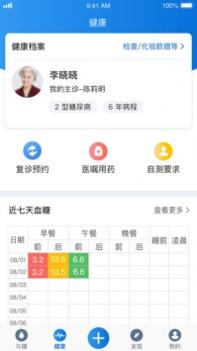 1、查看血糖趋势、餐前餐后血糖数据,免费图文咨询服务。