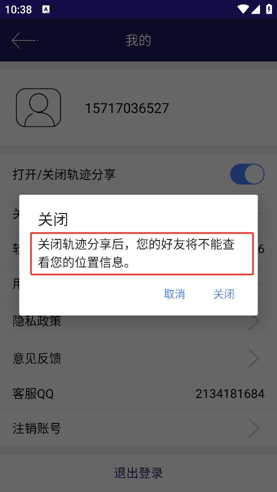 2、选择关闭轨迹分享