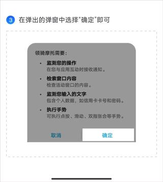 1、点击上方【去开启】按钮,在“无障碍”页面的“已安装服务”里找到“领骑摩托”应用并点击。