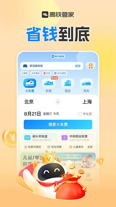 高铁管家12306是一款提供实时火车票查询服务的智能手机软件,为经常来往于全国各地的商务与旅行人士提供出行的信息服务。软件主要提供高铁及普通列车车票查询购买、酒店查询及预订、高铁列车动态查询,实时查询铁路列车时刻信息、车票价格等功能,支持在线购买、退票和改签、车票预售期提醒、收藏常用车次、信息分享服务,一站式预订机票、汽车票、专车、酒店。此外,高铁管家还有丰富的交互操作、为用户提供包括智能中转方案、正晚点查询、列车点餐在内的铁路出行服务,持续引领出行领域的创新体验。对此有需要的朋友快来下载试试吧!
