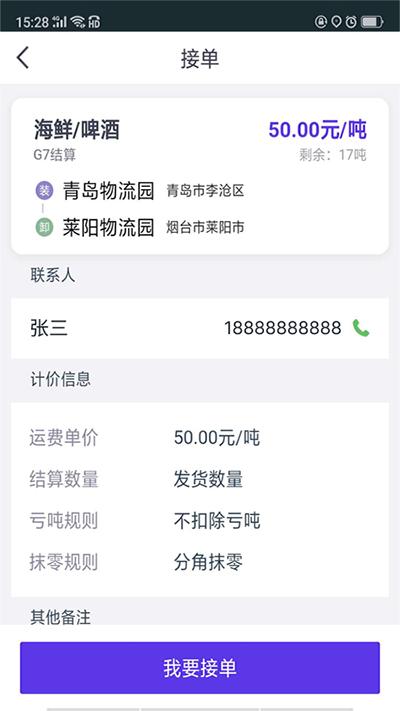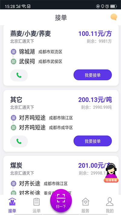 6、货车司机自由接单,在全部货源订单之中可以自选接单时间、货物订单类型。