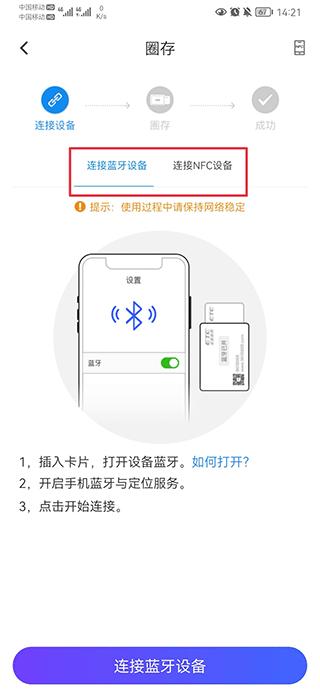2、根据提示使用蓝牙连接设备或者选择NFC设备连接;