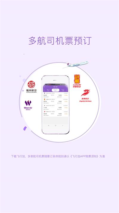 飞行加app是一款线上购票软件,由“西部航空app”升级改名而来,在这里用户进行机票预订和支付、航班动态查询、手机值机、会员里程查询等服务,提供实时的航班动态查询服务,包括起飞时间、到达时间、航班状态等信息,帮助用户规划行程,还允许用户购买航空公司提供的各类增值服务,如额外行李额、优选座位、快速安检通道等,随时随地为您提供贴身、便捷、温馨的出行服务。