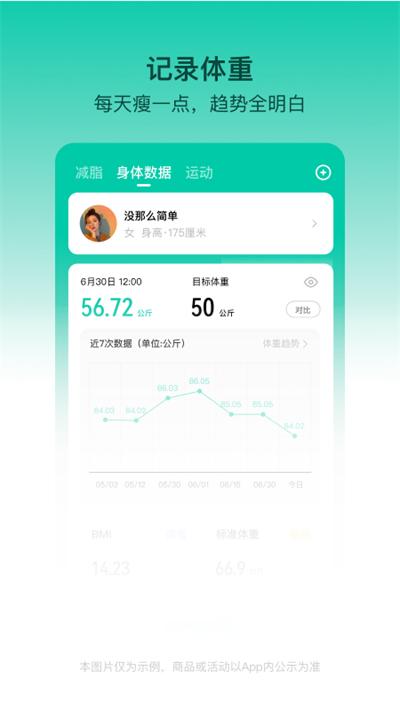 智能推荐减肥减脂目标——根据健康大数据,结合个人身体数据特征,制定符合自己的减肥目标;