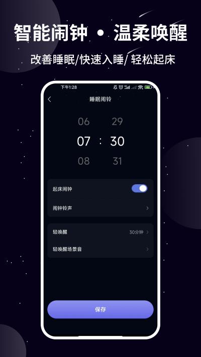 ·智能闹钟,帮助您在较轻的睡眠醒来,让你醒来时清爽温柔。