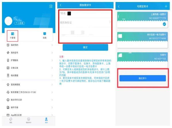 1、打开“闵行捷医”APP,点击“我的”,进入“卡管理”,添加“闵行区统一自费就诊卡”进行绑卡。