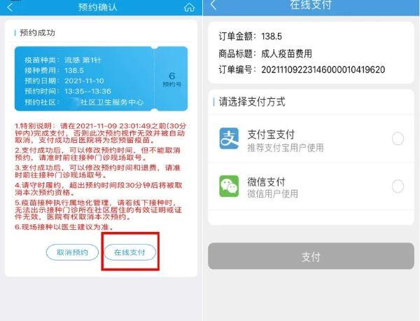 6、预约成功后可通过支付宝或微信在线支付疫苗接种费用,节省线下排队付款时间。