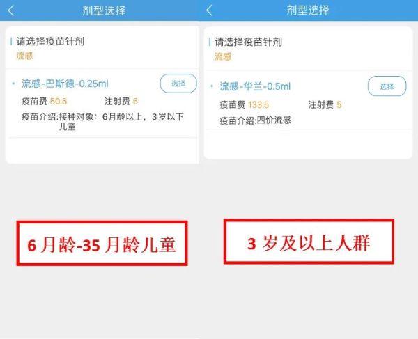 4、根据受种者的年龄自动分配适合预约的流感疫苗产品。