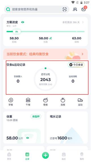1、在记录界面点击今日食谱记录;