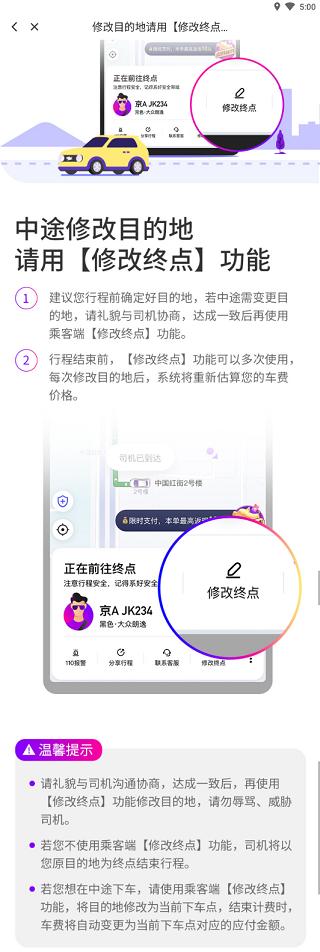 2、如行程中如产生合理附加费请与司机协商使用其他方式支付,如微信、支付宝、乘客端【发红包】功能等方式。