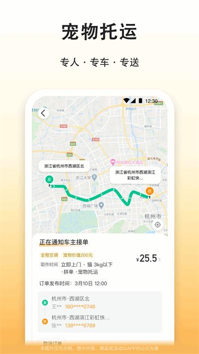 3、除了提供顺风车服务之外还有打车、送宠物、急件等三个功能;