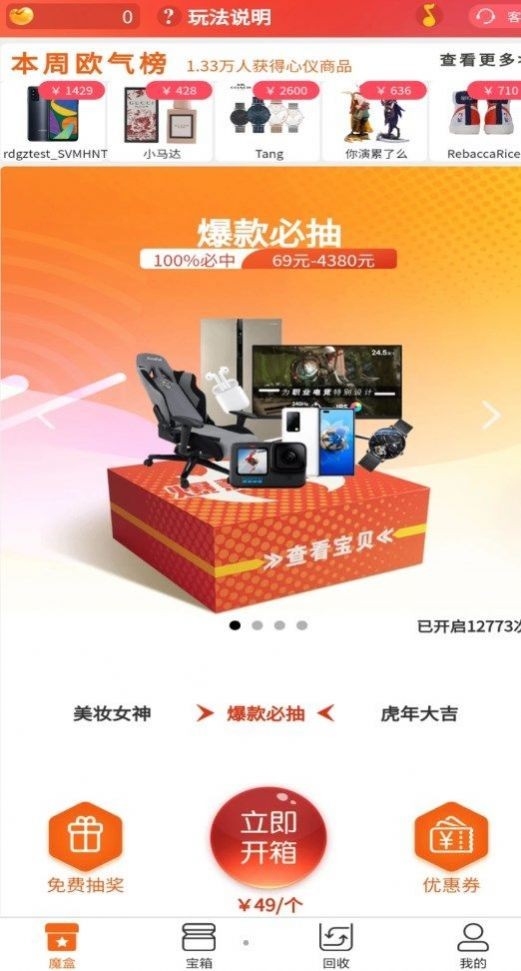 1、这是一个可以选择盲盒的在线购物平台。任何时候输入选择都没有问题。