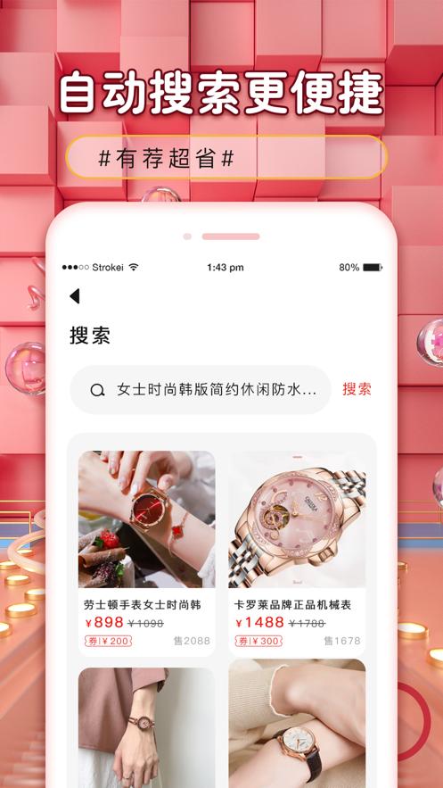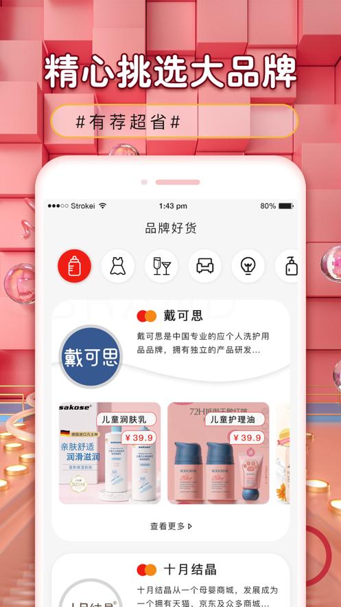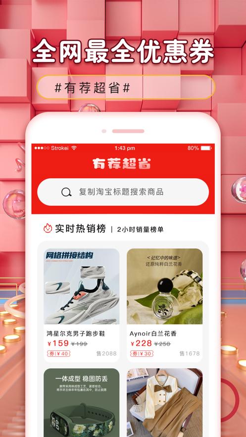 有荐超省是一款非常好用的手机线上购物的软件,软件内的商品种类是非常的齐全的,为用户们带来非常多的购物优惠,使用起来的话也是非常的方便,海量的功能都是可以在这里体验到的,这里每天都会为用户们发放超多的购物优惠券,能够满足用户们的不同的购物需求,想要了解的话可千万不要错过了,在这里购物能够省下超多的钱!