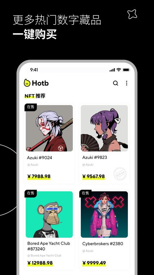 Hotb数字藏品平台软件内为用户们提供了超多的数字藏品,用户们在平台内能够见到超多的数字化的艺术品,这个就是目前非常热门的数字藏品啦,用户们在这里下载软件的话就能够体验到数字藏品的玩法啦,这里为用户们提供了非常多的数字藏品的相关资讯了,能够满足用户们的不同的购买需求,想要了解的话就一定要来这里下载软件哦,本软件非常的真实可靠的。