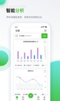 1、照片识别:使用软件取乙肝检查单,软件自动生成可视化图表,体检指标一目了然,轻松分析疾病状态,给出用药建议。