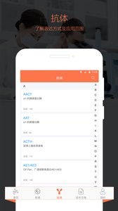 搜索,可以在本应用的内容内搜索想要知道的疾病和抗体;