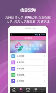 【排版查询】提供本院全部科室普通门诊和专家门诊排版信息,方便患者查看。