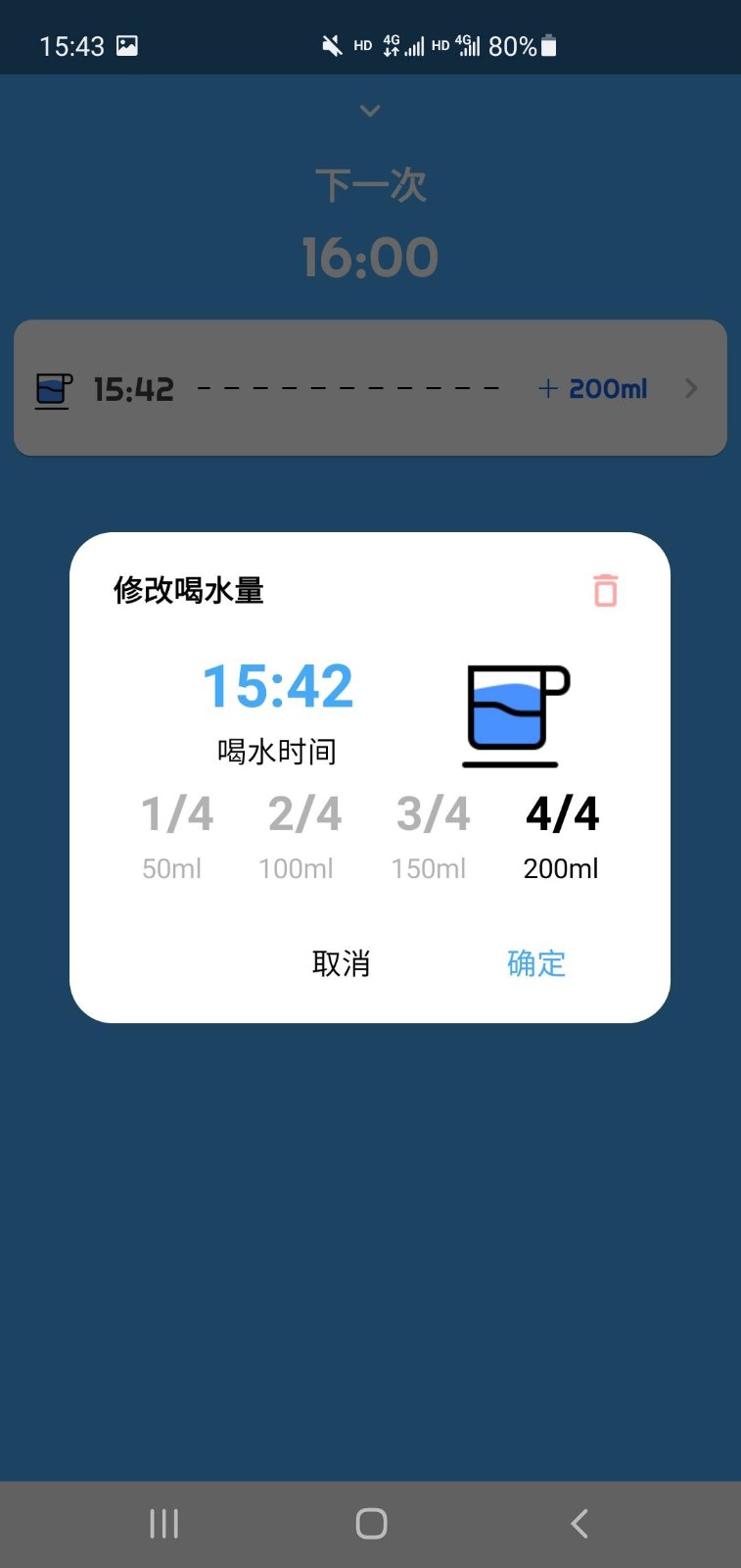 2、用户可以实时的记录自己的喝水次数和数量,放心的设置