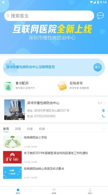 深圳慢病是很专业的疾病预防软件,在这里有专业的医疗健康知识,用户可以了解并预防疾病,依托于中心丰富的医疗资源,为用户提供优质的医疗健康服务软件,有需要的朋友可以下载