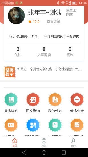 台上功能众多,可以咨询复诊、图文咨询、随时查看自己的处方单、各种医药资讯等。