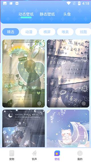 在壁纸板块,挑选你觉得好看的壁纸设置为桌面,里面有静态壁纸、动态壁纸以及头像。