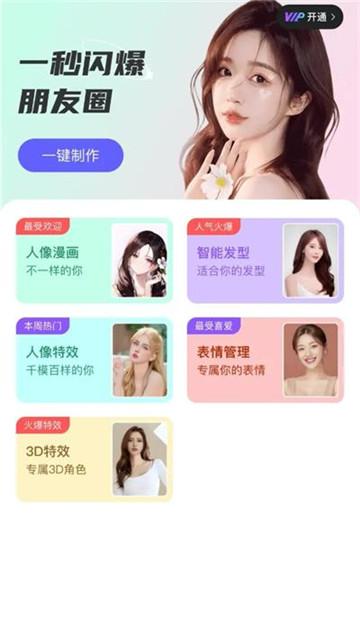 1.用户下载应用后即可进入应用软件,应用首页将会为用户显示多种不同的特效选择,如人像漫画、智能发型、人像特效、表情管理、3D特效等等。