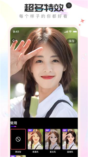 2.应用拥有丰富的多样的特效选择,如人像漫画、智能发型、人像特效、表情管理、3D特效等,为用户提供全方位的使用体验。