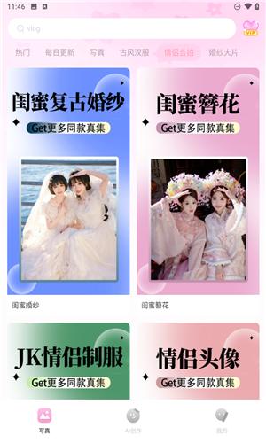 2.应用中的写真模板、素材等等都将会定期更新,确保能够跟上时下潮流,为用户提供最流行的拍摄风格。