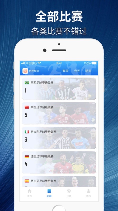 世界预测是专门为喜欢体育的用户们推出的软件,让用户们可以在这里查询到非常多的体育资讯,海量的功能都是可以在这里体验到的,能够满足用户们的不同的资讯,海量的功能都是可以在这里体验到的,这里的资讯都是全新的,让用户们可以在这里根据喜好的赛事来选择查看,这里的赛事比分都是非常的详细的,一起来这里看看吧!