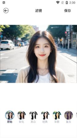 2.这款应用为用户提供了复古、现代、自然等多种风格的滤镜,用户可按照需求自行选择,为照片决出最适配的滤镜。