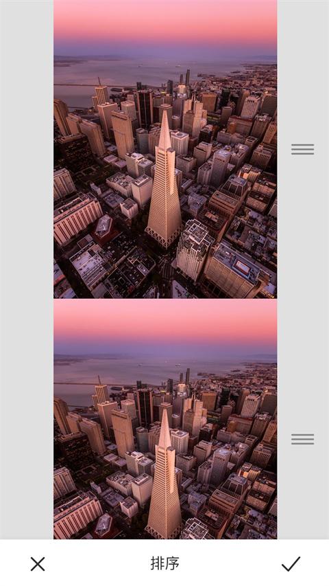 4.这款应用的操作流畅,用户可通过简单点击进行旋转、翻转、缩放、长按拖动交换图片等等动作。