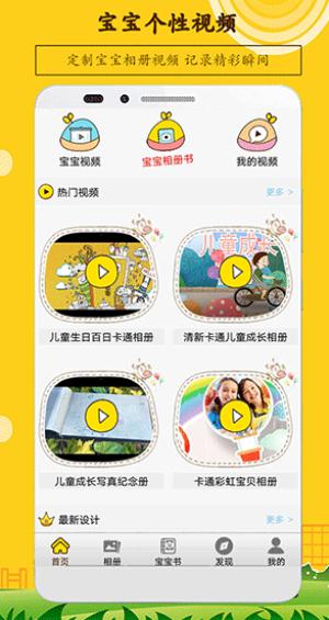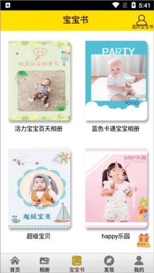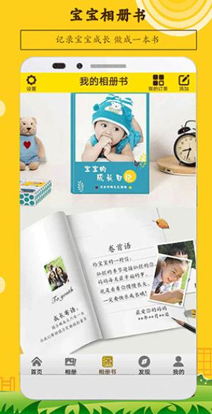 1、下载安装完成app后,点击进入会看到首页、相册、宝宝书、发现和我的版块
